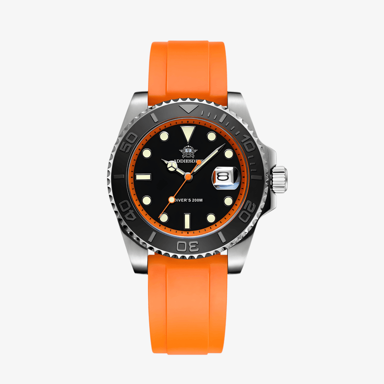 Addiesdive AD2040 je sat za muškarce koji traže praktičnost, tačnost i upečatljiv dizajn. Kombinacija crnog brojčanika i narandžaste narukvice daje snažan vizuelni identitet koji se ističe u svakoj prilici.