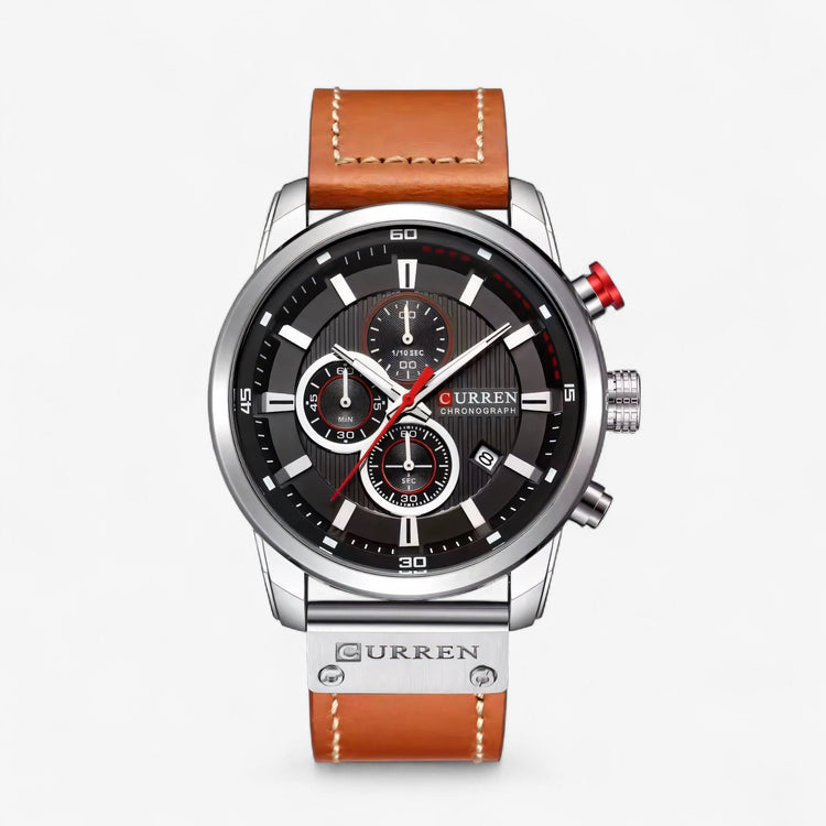 Curren CR-8291 donosi uravnotežen spoj modernog izgleda i svakodnevne praktičnosti. Crni brojčanik, detalji u srebrnoj boji i kaiš u toploj braon nijansi čine sat vizuelno ubedljivim, ali nenametljivim – idealan za svakog muškarca koji zna šta nosi.
