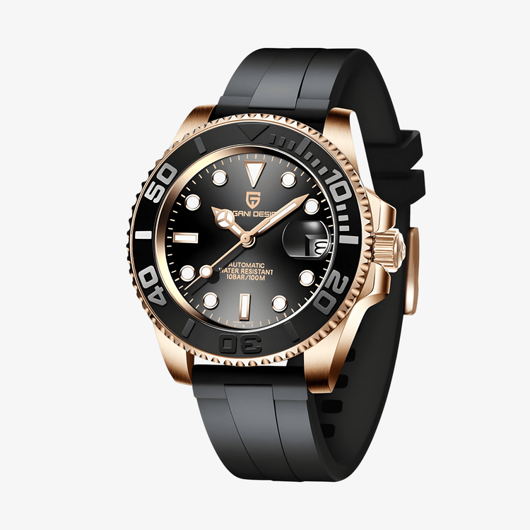 Pagani Design PD-1651 u sofisticiranoj crno-zlatnoj izradi predstavlja klasičan spoj luksuza i funkcionalnosti. Namenjen je muškarcima koji biraju detalje sa jasnim stavom – onima koji žele da njihov sat istovremeno odiše autoritetom, stilom i svakodnevnom praktičnošću.