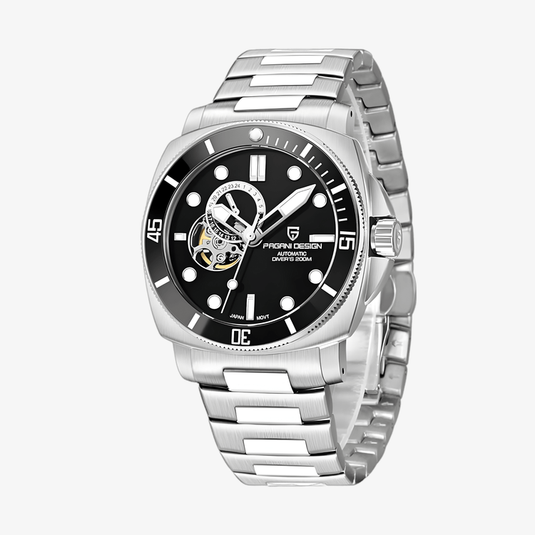 Pagani Design PD1736 u crnoj boji predstavlja pravi izbor za muškarce koji traže spoj kvaliteta, funkcionalnosti i prepoznatljivog izgleda. Otvoreni brojčanik prikazuje rad proverenog Seiko NH39 automatskog mehanizma, dok metalna narukvica dodaje osećaj stabilnosti i klasičnog karaktera.