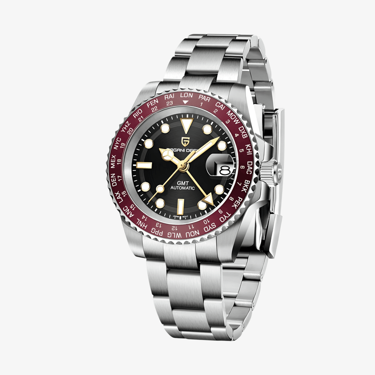 Pagani Design PD1758 Red GMT Master je model stvoren za muškarce kojima je potreban pouzdan automatik sa GMT funkcijom. Namenjen je onima koji često putuju ili žele praktičan sat koji kombinuje sportsku energiju i svakodnevnu upotrebljivost.