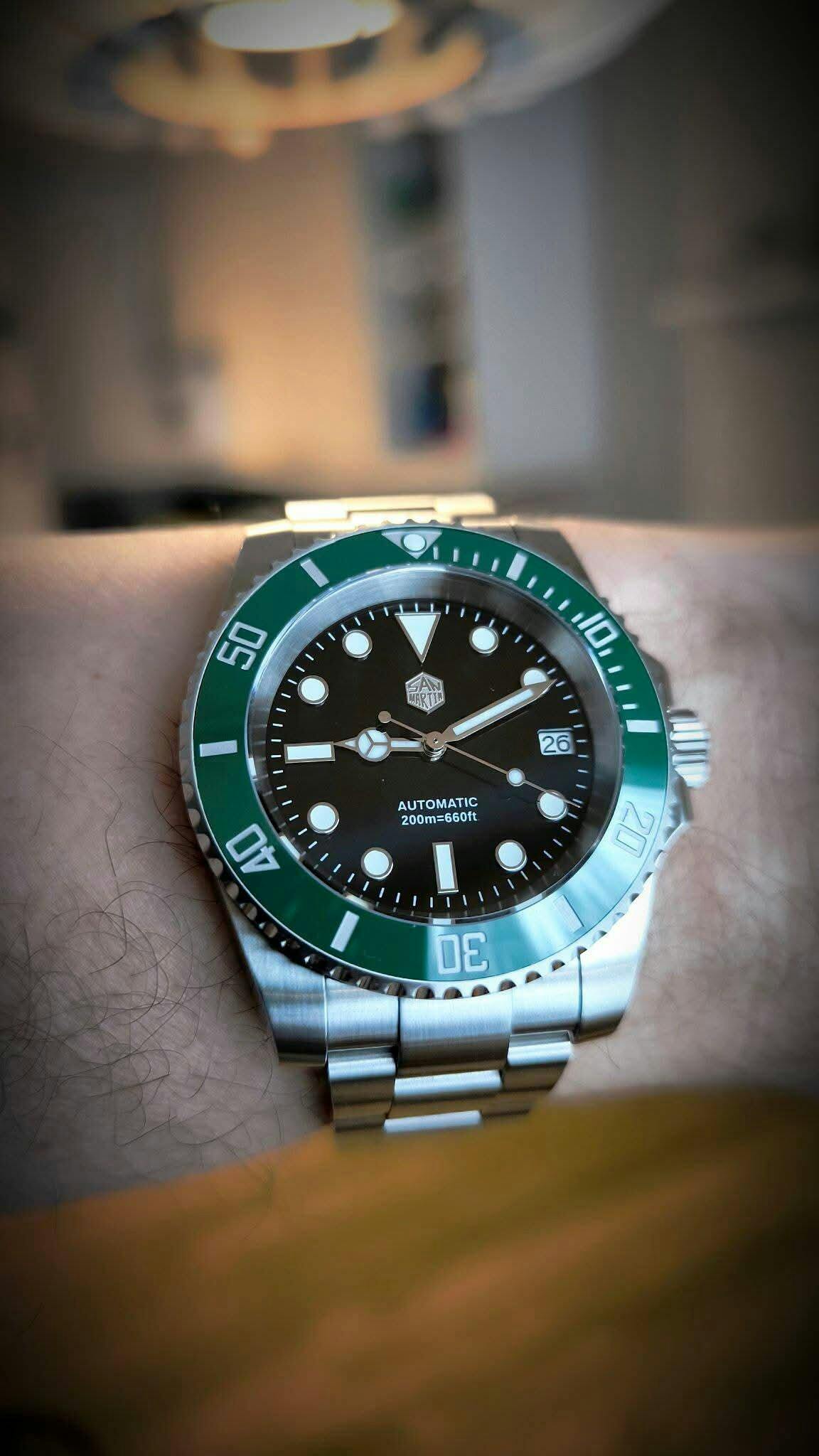 San Martin SN0017je sat za muškarce koji cene preciznost, kvalitetnu izradu i savremen dizajn. Zelena korona u kombinaciji sa crnim brojčanikom pruža upečatljiv kontrast, a istovremeno zadržava ozbiljnost. Bez suvišnih detalja – samo čista funkcionalnost i besprekorno izrađen automatski mehanizam.