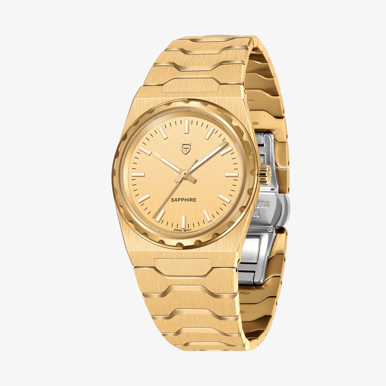 Pagani Design PD-YS020 u zlatnoj boji sa bež brojčanikom je izbor za muškarce koji cene svedenost, luksuz i kvalitet u jednom modelu. Reč je o satu koji uspeva da spoji eleganciju i minimalizam – bez suvišnih detalja.