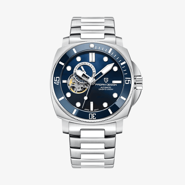 Pagani Design PD1736 – ovo je sat za one koji cene pouzdanost i ne pristaju na kompromise. Precizna automatika, izražajan brojčanik i prepoznatljiv dizajn čine PD1736 pametnim izborom svakog muškarca. Kroz otvoreni brojčanik vidi se proveren Seiko NH39 mehanizam, dok metalna narukvica pojačava osećaj snage i ozbiljnosti na ruci.