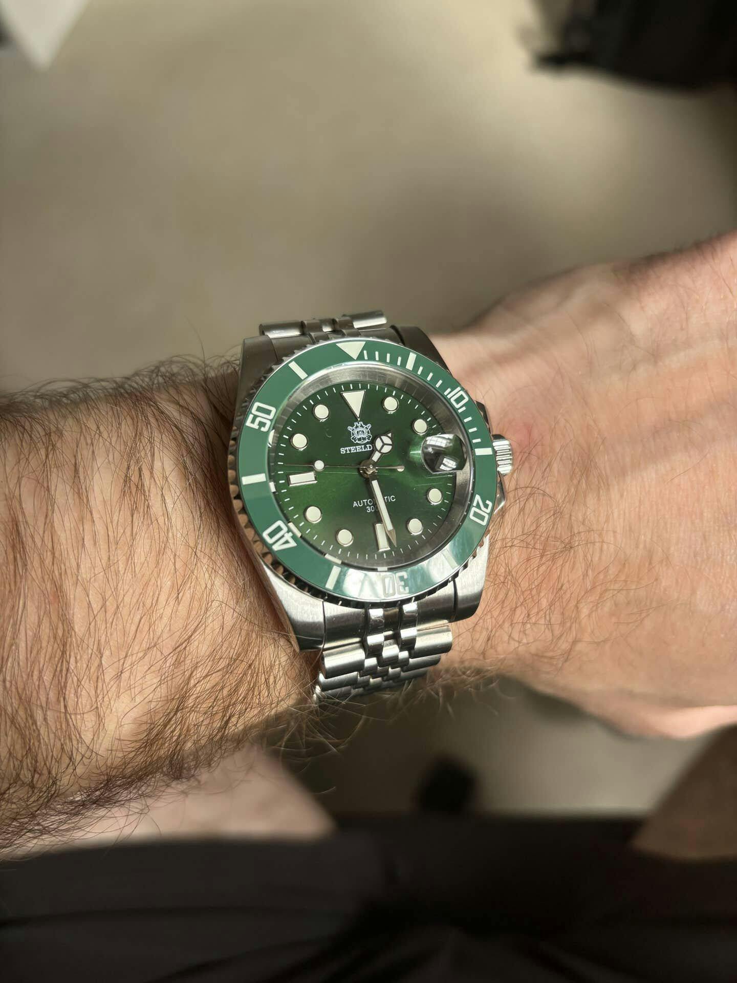 Steeldive SD1953 u potpuno zelenoj izradi namenjen je muškarcima koji žele pouzdanost profesionalnog ronilačkog sata i boju koja odmah privlači pažnju. Namenjen je onima koji cene preciznost, besprekornu izradu i dizajn koji ostaje aktuelan bez obzira na trendove.