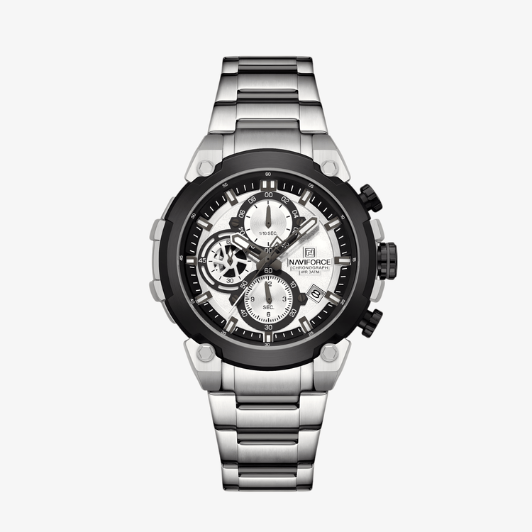 Naviforce NF8071 u srebrnoj boji dizajniran je za muškarce koji žele sat koji izgleda ozbiljno, ali je dovoljno sveden za svakodnevno nošenje. Kombinacija srebrnog kućišta i crnih detalja pruža balans između poslovnog i modernog izgleda.