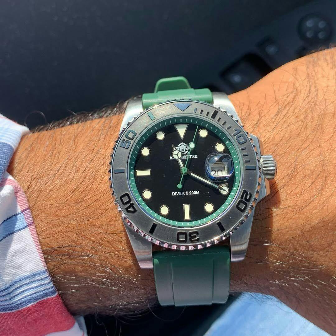 Addiesdive AD2040 je izbor za muškarce koji žele pouzdan sat sa sportskim karakterom i upečatljivim detaljima. Crni brojčanik u kontrastu sa zelenom silikonskom narukvicom daje snažan i svež izgled koji privlači pažnju u svakoj prilici.